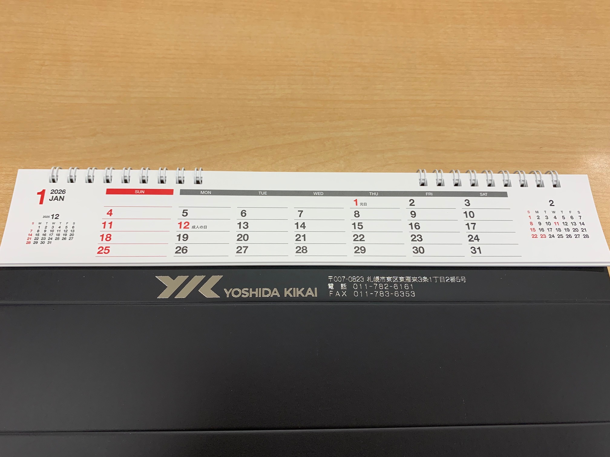 ちなみに弊社のカレンダーはあまり見かけない横長の卓上タイプで